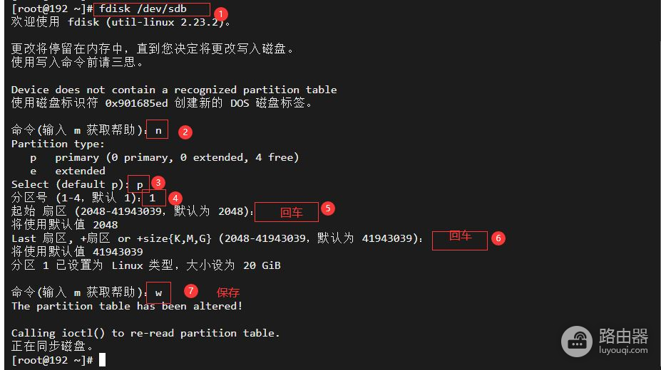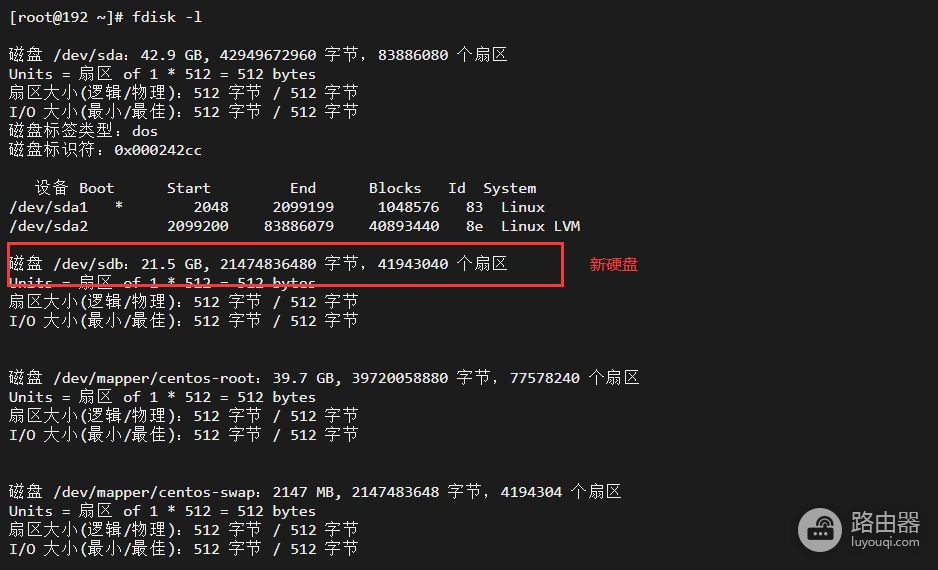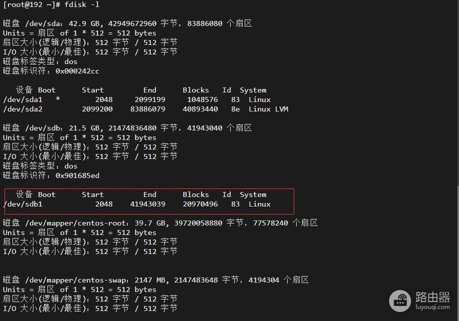 3.使用命令:fdisk -l检查分区是否分区完成。