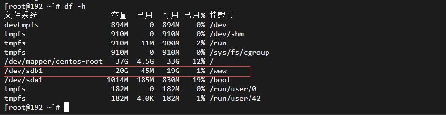 5.磁盘挂载到对应目录,在根目录新建www目录,并挂载。